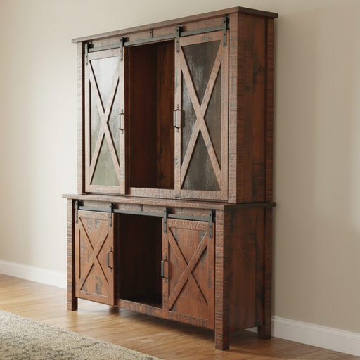 Sliding Barn Floor 3-Door Hutch - Rough Sawn