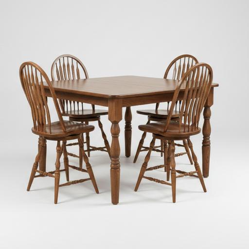 Traditional Counter Dining Set: - 36" Square Table (Optional Leaves) - (4) High Bent Paddle Swivel Counter Chairs Table Features: - Top Thicknes...