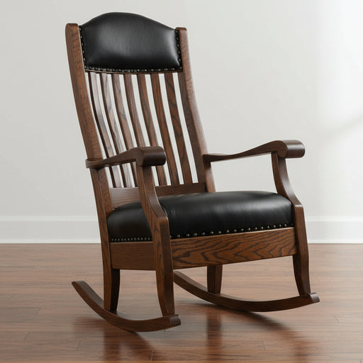 • Quick Ship Amish Auntie's Buckeye Rocking Chair - Top Grain Leather - Genuine Leather - Buckeye Rockers