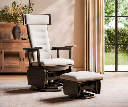 • Amish #220 Glenwood Glider - Rough Sawn Oak - Byler's Fabric - Set Photo With Ottoman