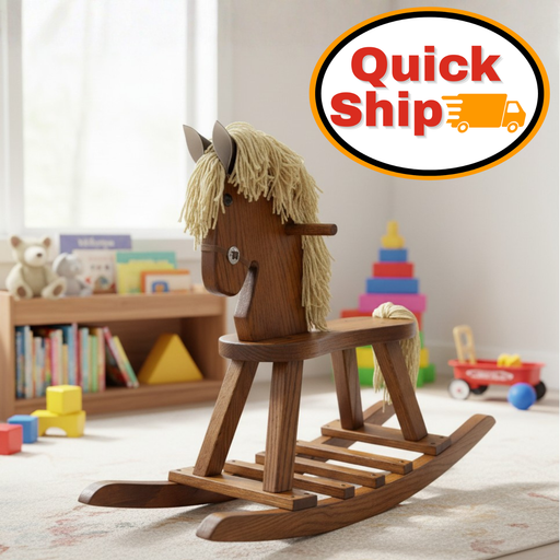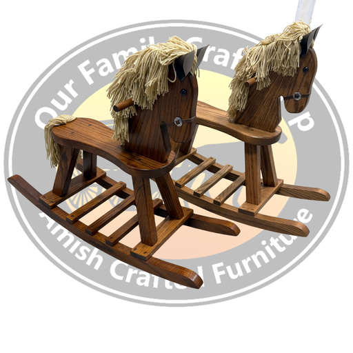 Buy Amish kids' rocker or rocking horse for superior craftsmanship, durability, and timeless appeal. Handcrafted from solid hardwood, these pieces are designed to last, providing safe, sturdy seating and entertainment for children. Customizable in size, wood type, and finish, Amish rockers and horses can complement any nursery or playroom decor. Made with eco-friendly materials and non-toxic finishes, these items offer a sustainable, long-lasting option for your child's room.