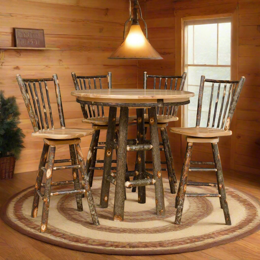 Amish Hickory Log Pub Set with Stick Back Chairs